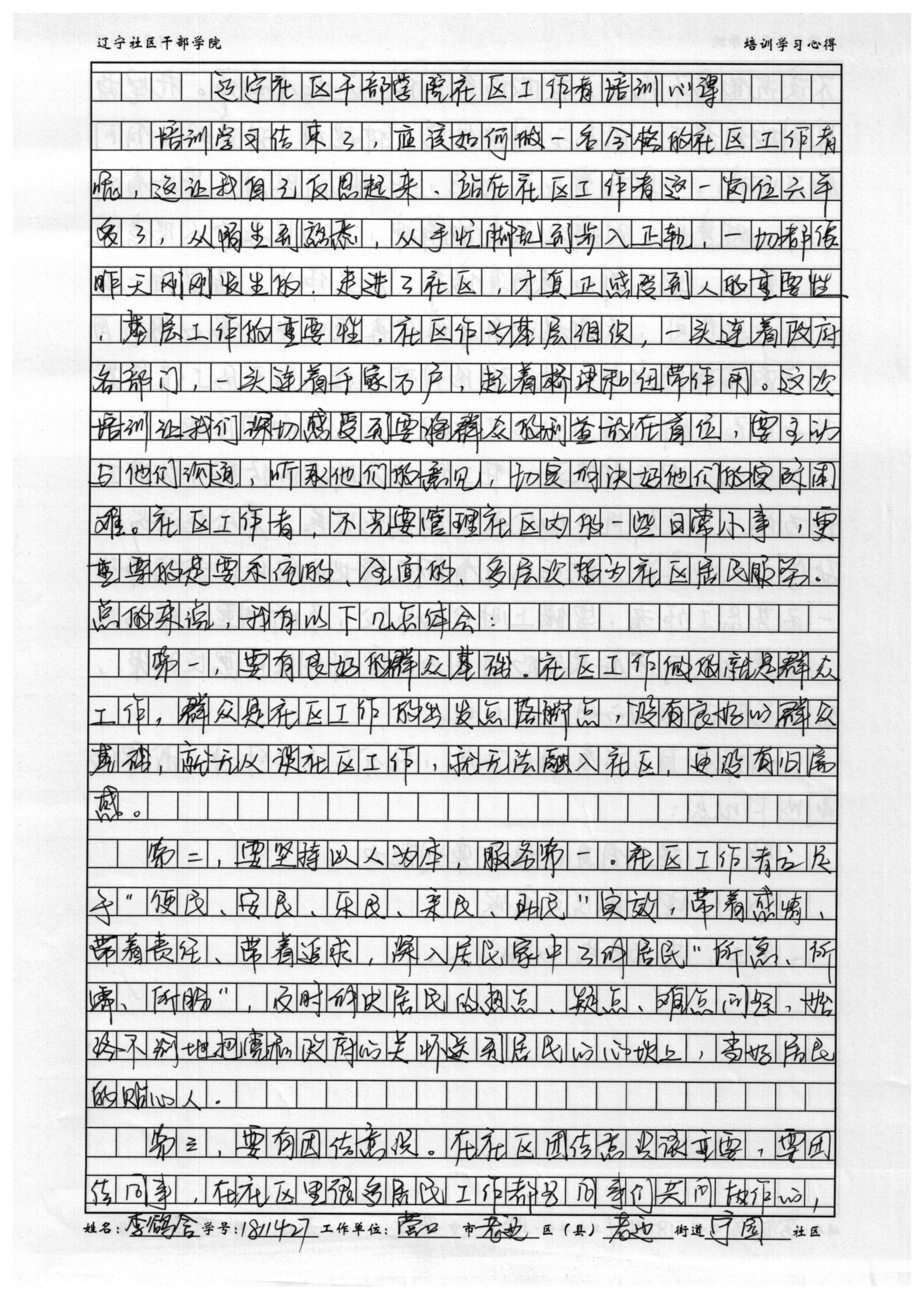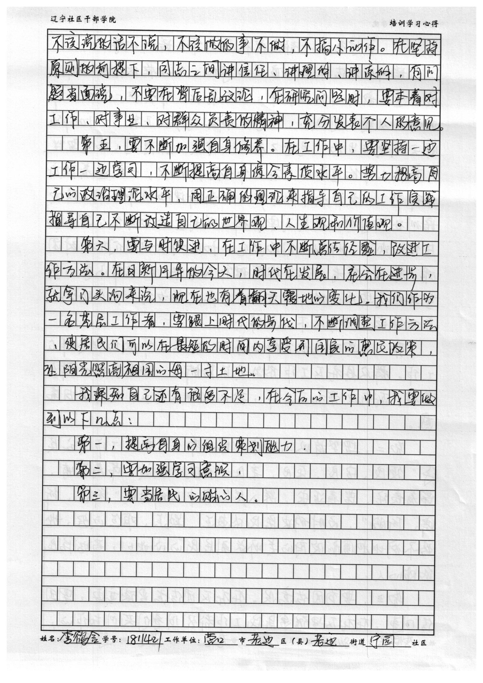 营口市老边区老边街道办事处宁园社区委员李鹆含学习心得