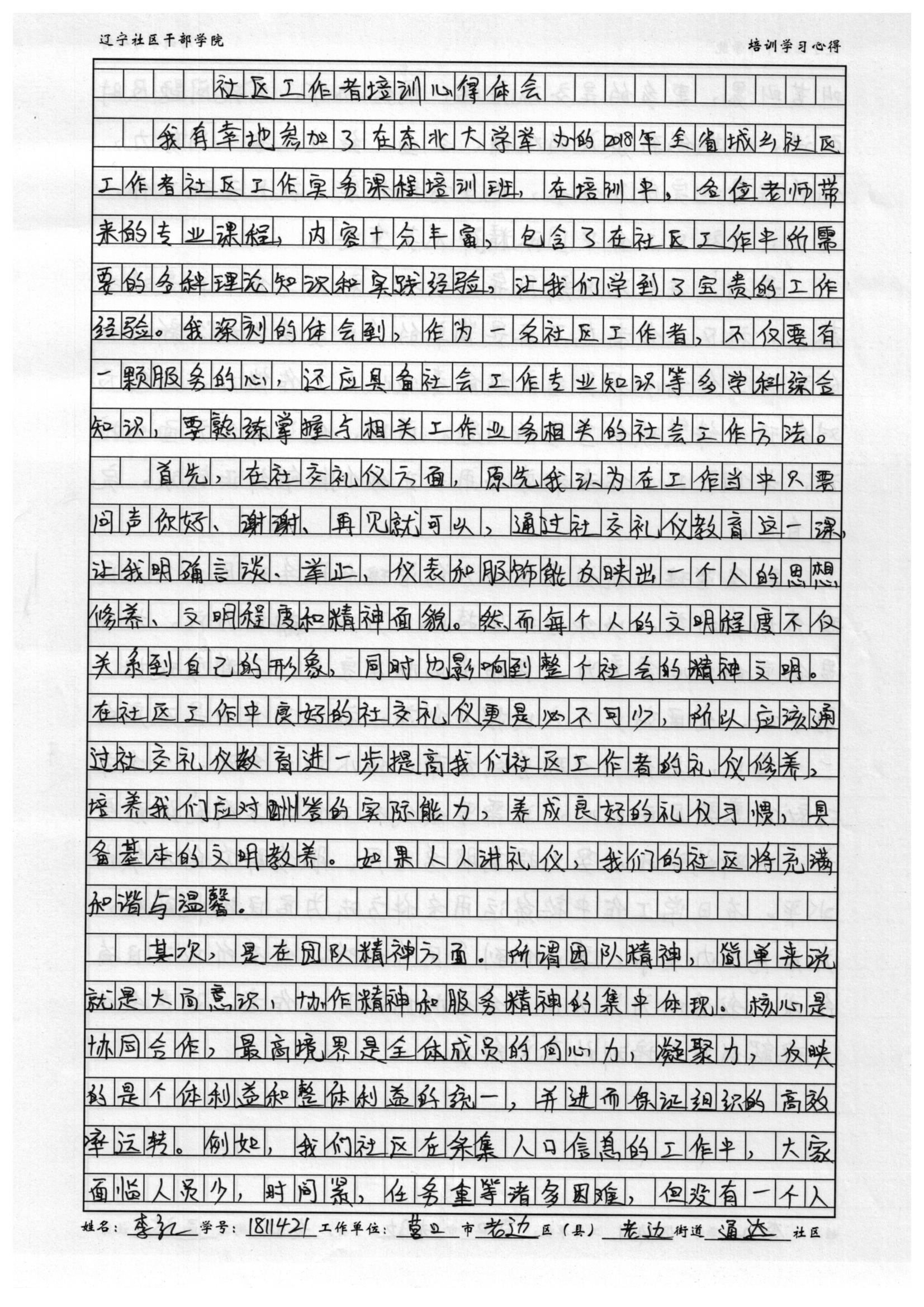 营口市老边区老边街道办事处通达社区西街支部书记李红学习心得
