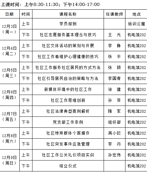 2018年社区工作者社区工作实务第十二期(总第56期)培训班课程安排