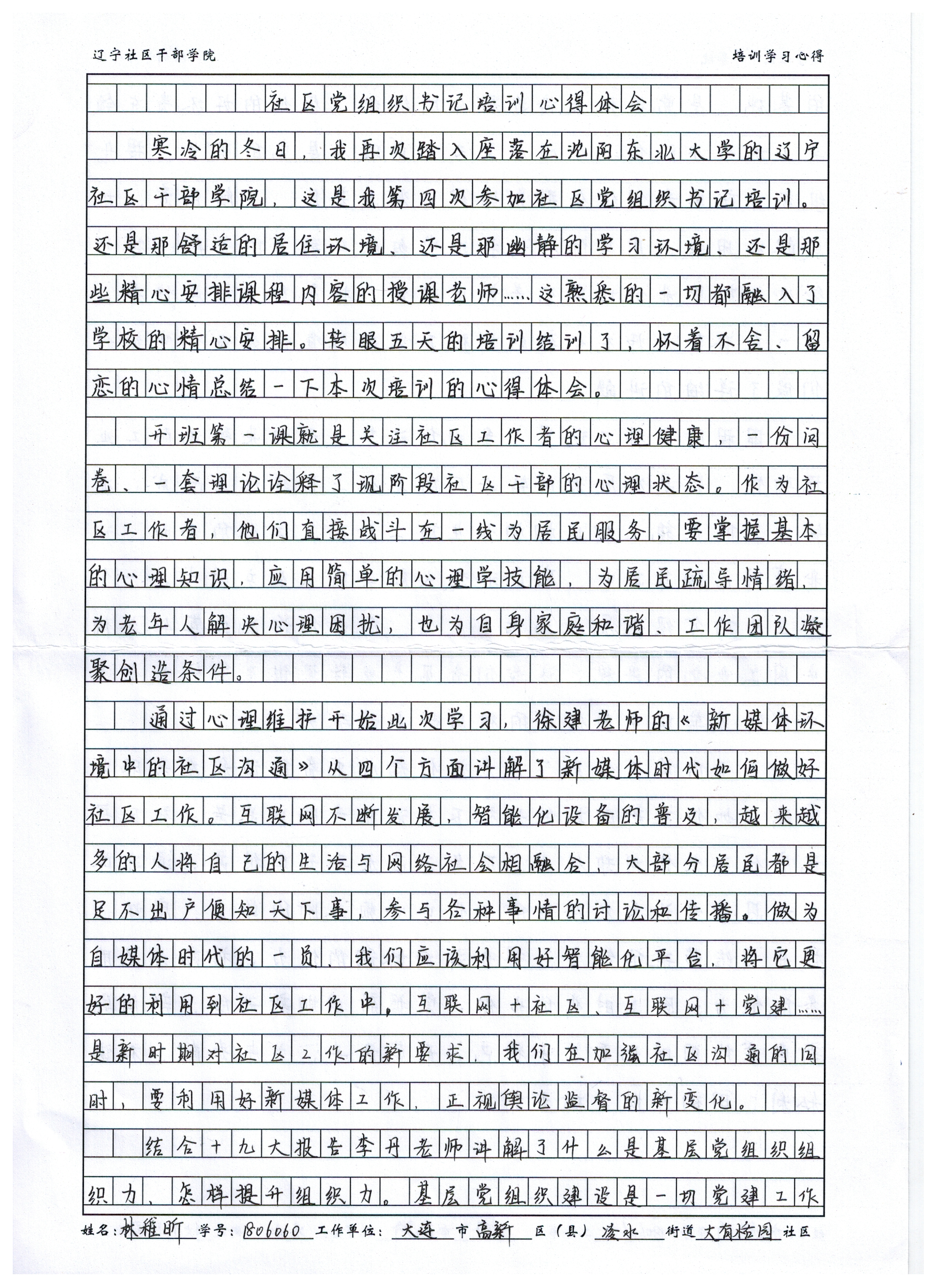 大连高新园区凌水街道大有恬园社区书记林稚昕学习心得