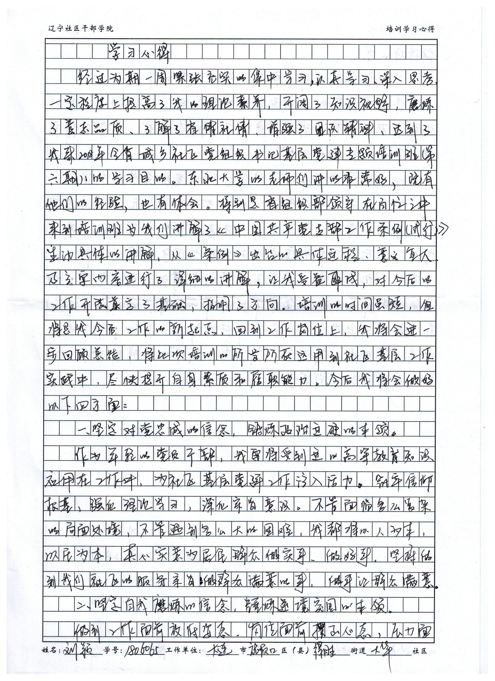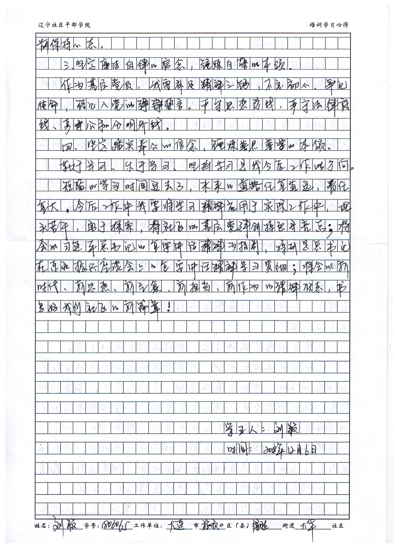 大连市旅顺口区得胜街道大华社区党委委员刘颖学习心得