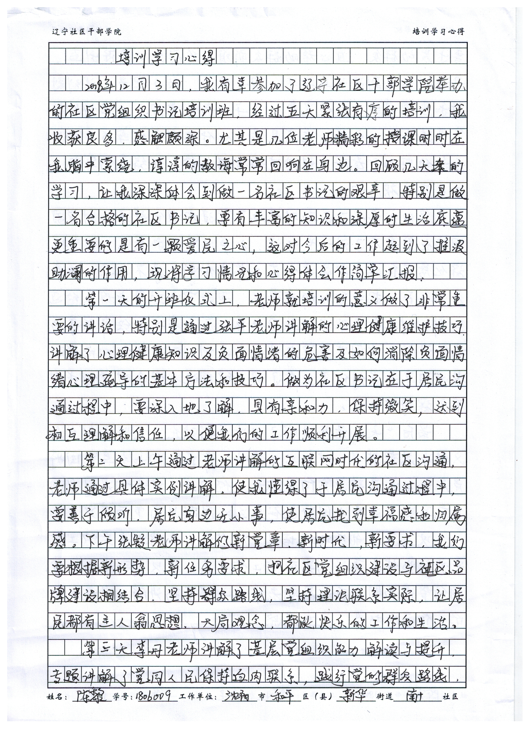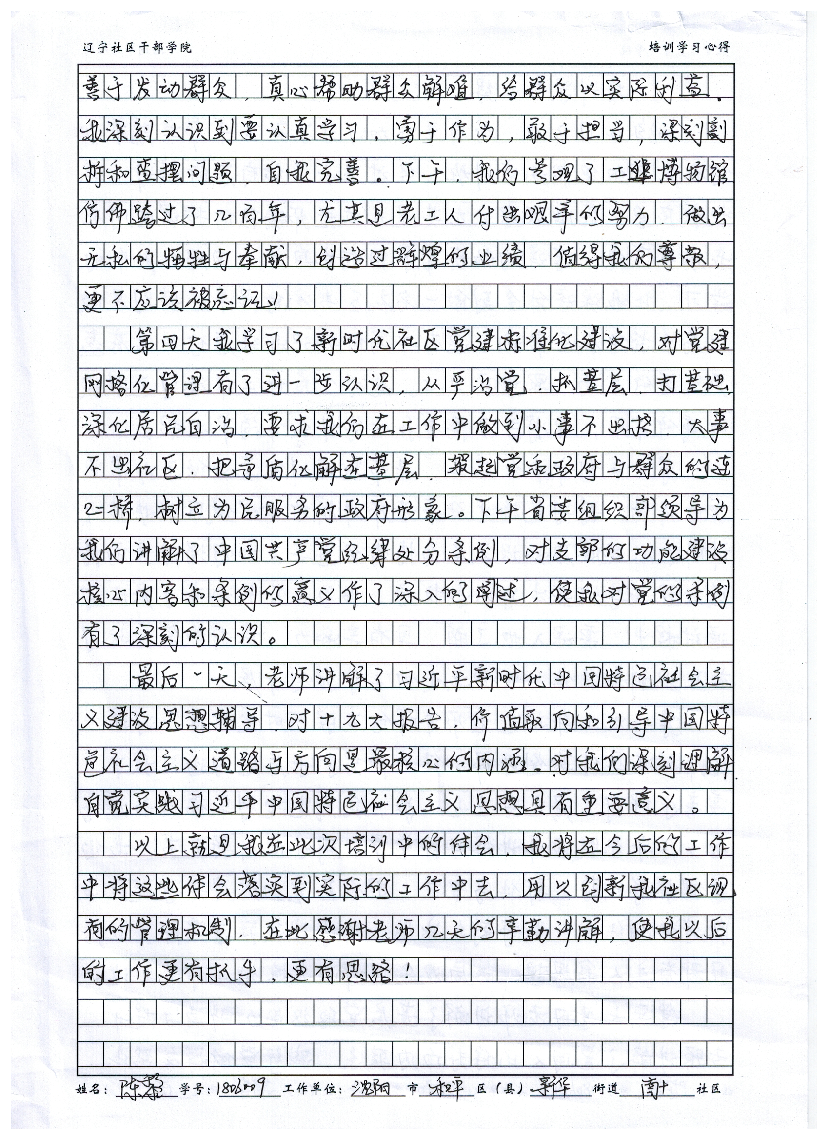 沈阳市和平区新华街道南十社区社区书记陈黎学习心得