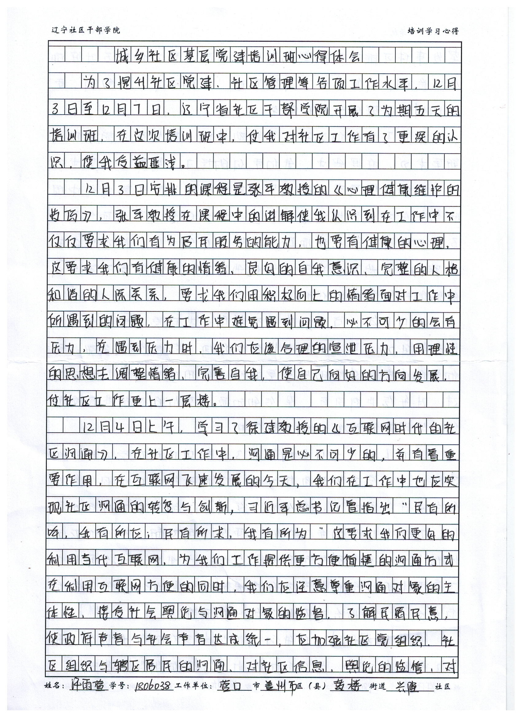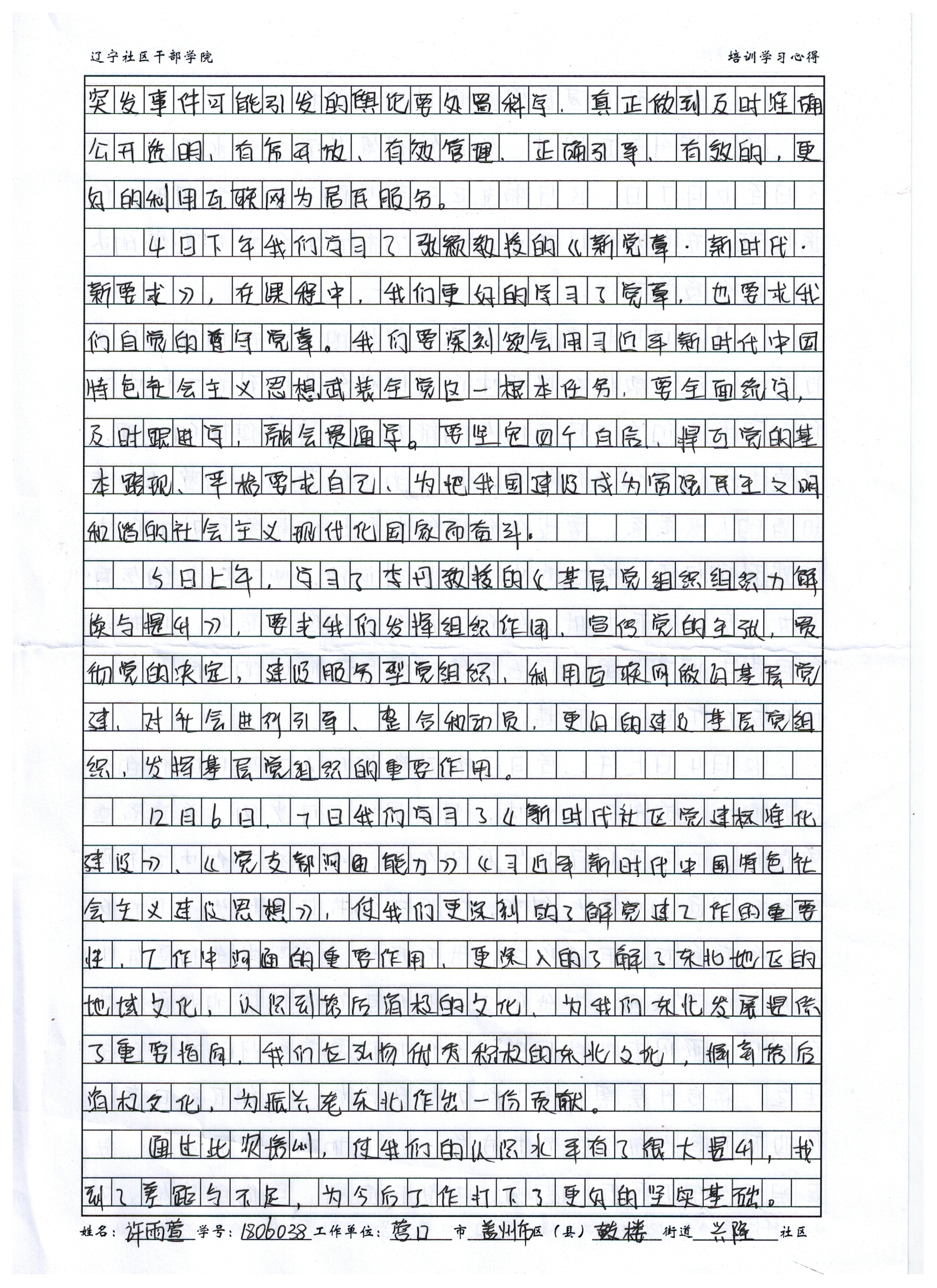 营口市盖州市鼓楼街道兴隆社区工作者许雨萱学习心得