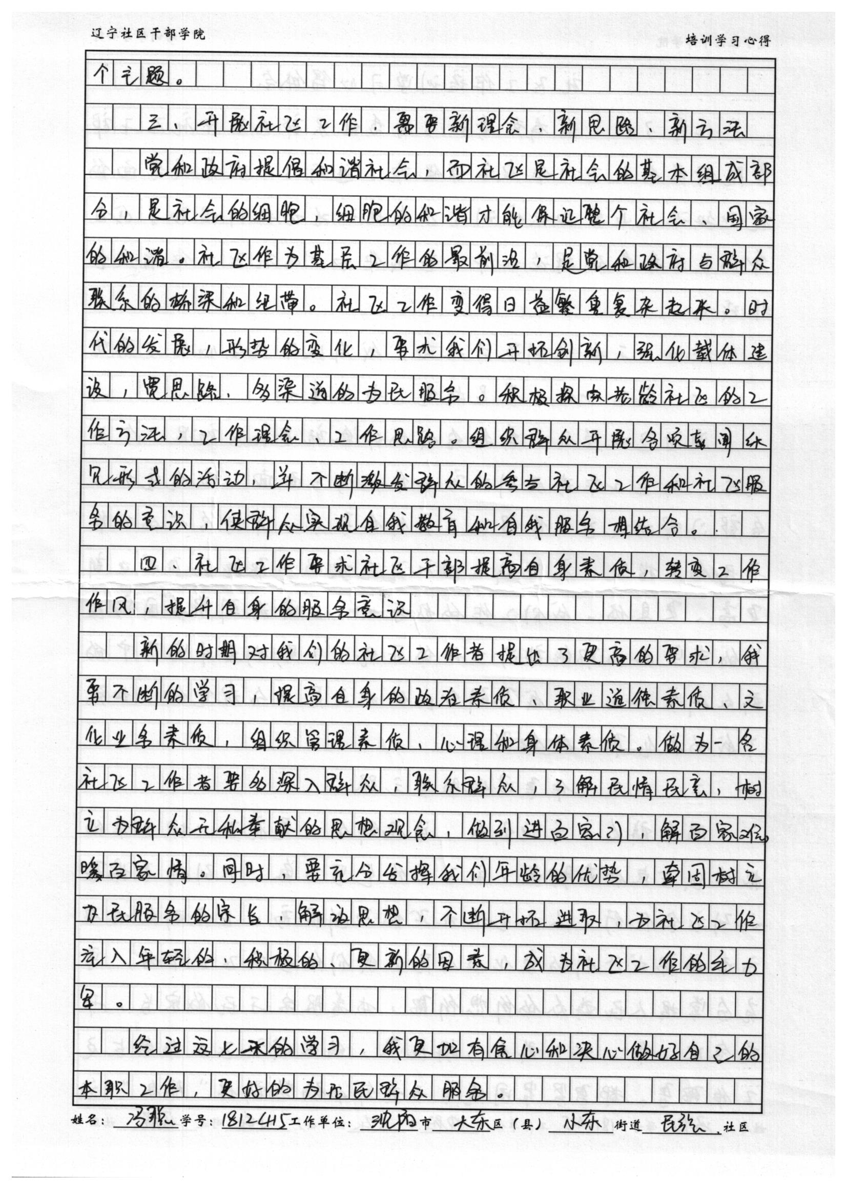 沈阳市大东区小东街道民强社区干事冯聪学习心得
