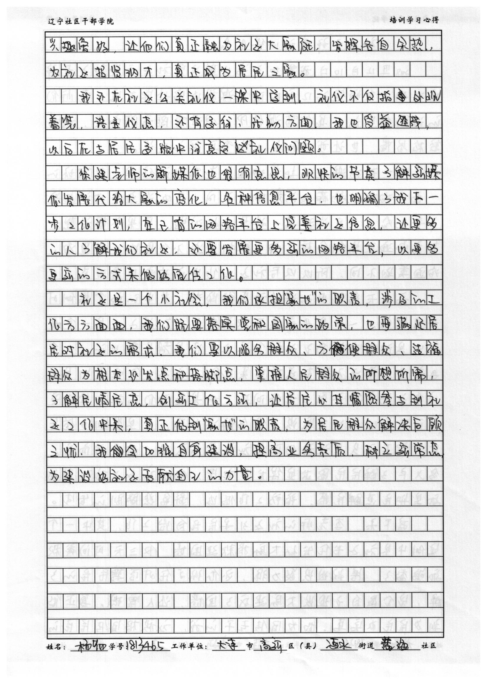大连高新园区凌水街道蓝海社区宣传专干杨茜培训心得