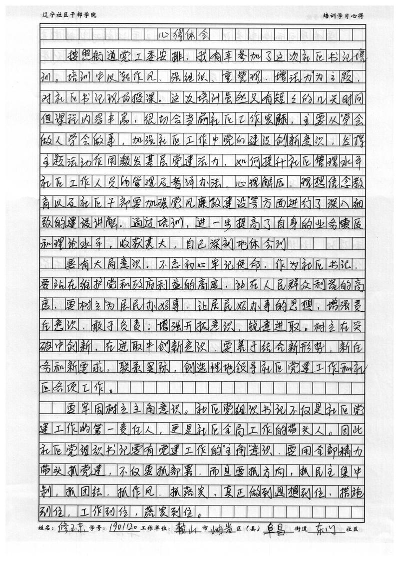 鞍山市岫岩县阜昌街道东门社区书记修玉东学习心得
