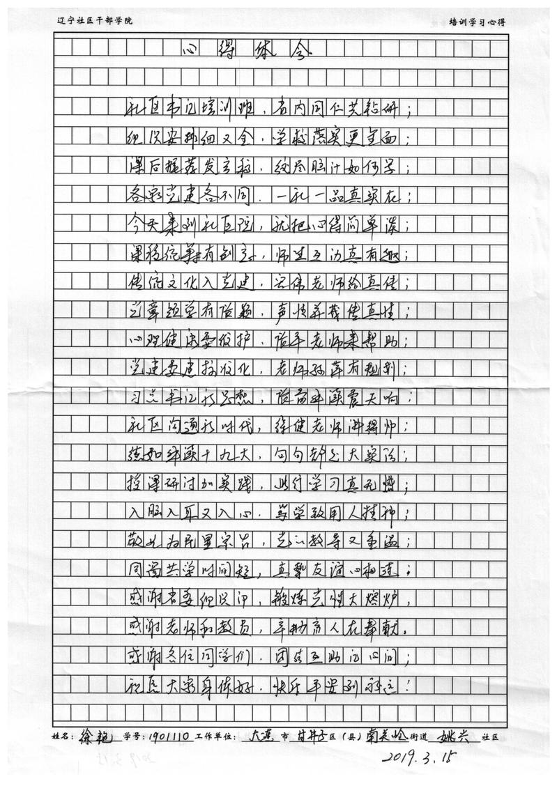 大连市甘井子区南关岭街道姚兴社区书记徐艳学习心得