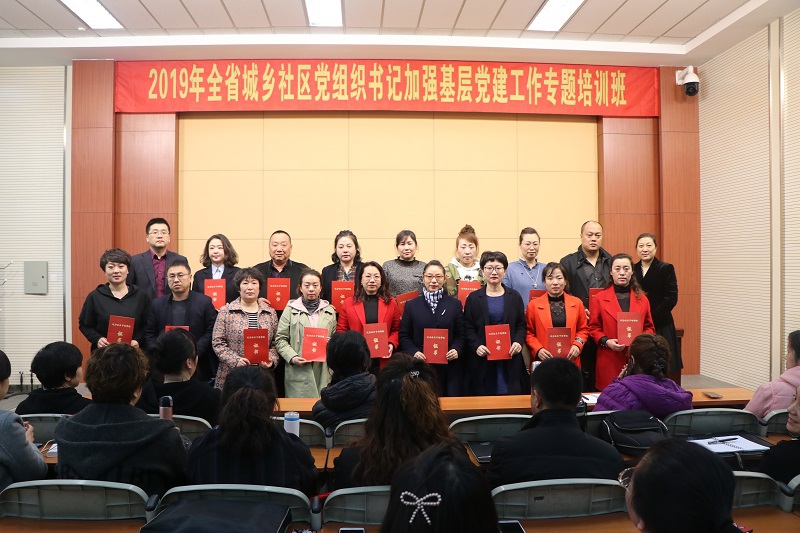 3月29日10:30,2019年全省城乡社区党组织书记第二期(总70)培训班结业仪式在东北大学机电学馆201室举行,辽宁社区干部学院副院长、文法学院院长孙萍同志,辽宁社区干部学院培训部主任赵璇同志参加了本次结业仪式,仪式由赵璇主持。