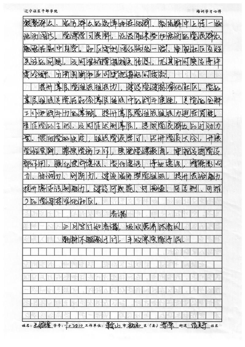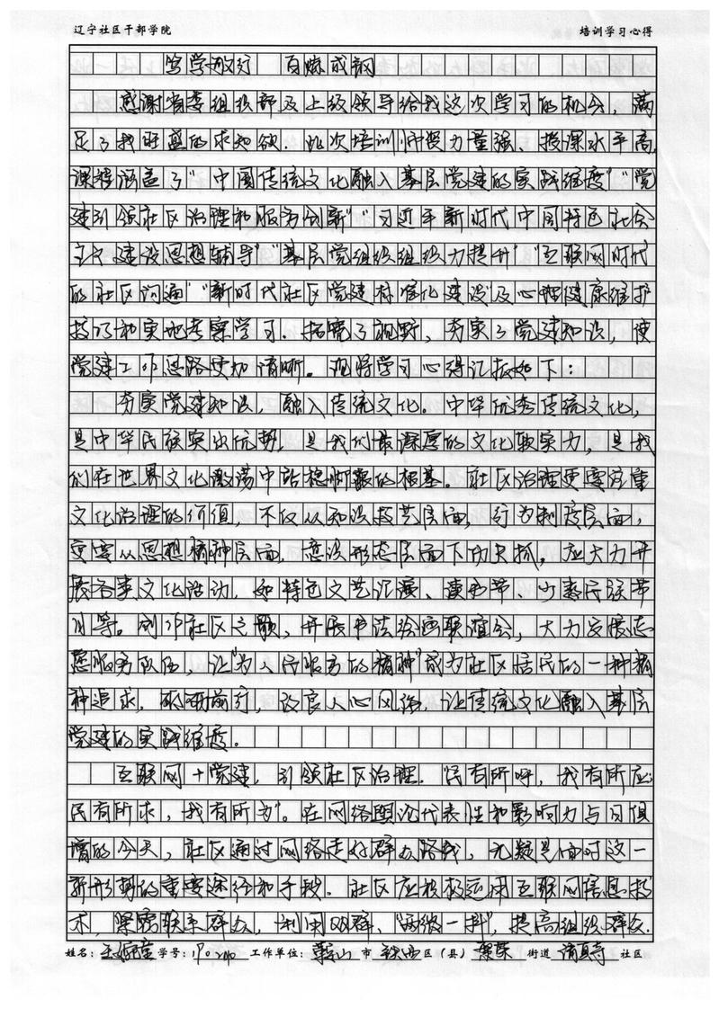 鞍山市铁西区繁荣街道清真寺社区副书记王婉童培训心得
