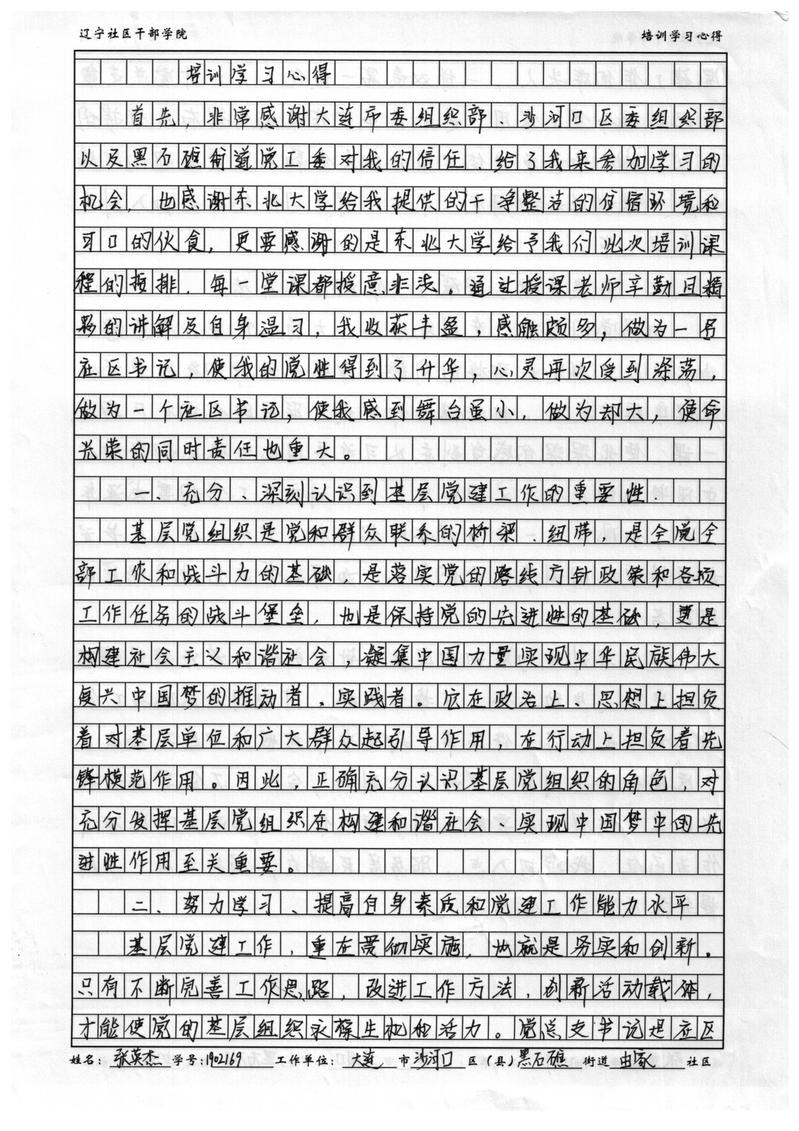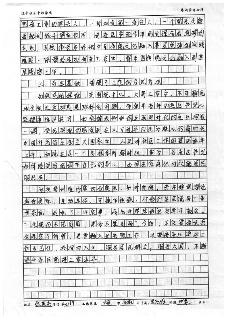 大连市沙河口区黑石礁街道由家社区书记张英杰培训心得