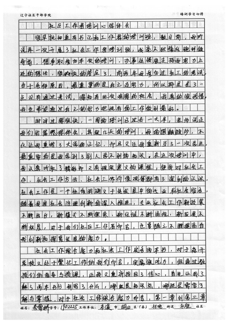 本溪市明山区北地街道永胜社区卫生专干李雪娇培训心得