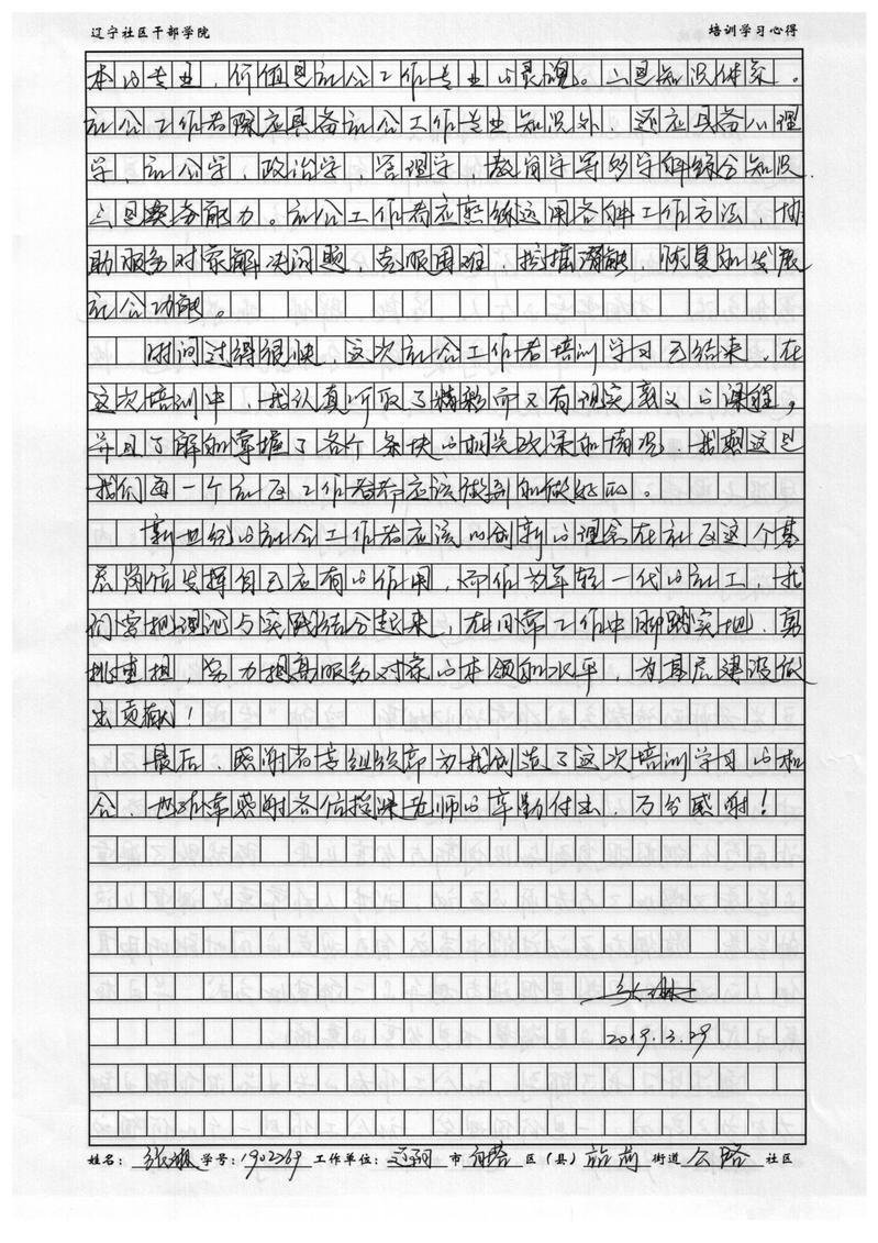辽阳市白塔区站前街道公路社区书记张琳培训心得