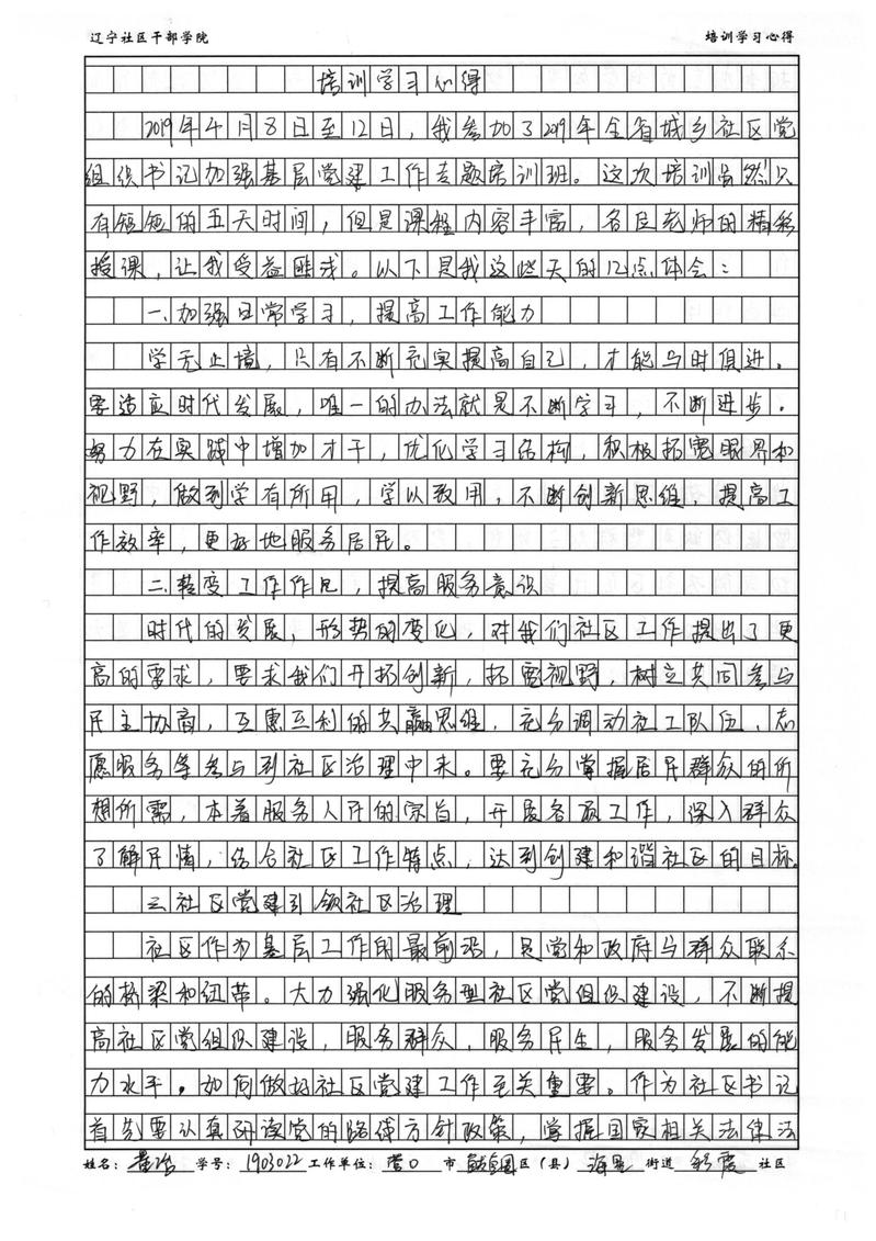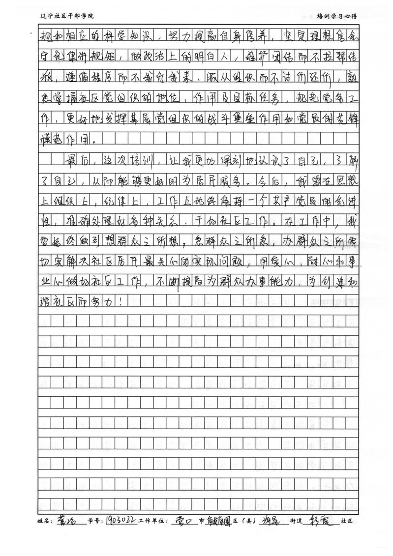 营口市鲅鱼圈海星街道彩霞社区书记董冶培训心得