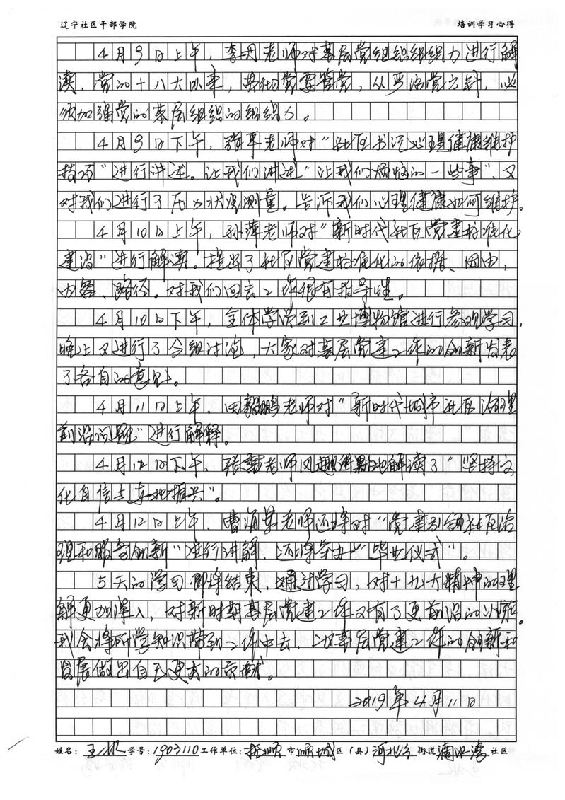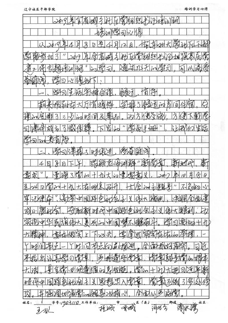 抚顺市顺城区河北乡滴水湾社区支部书记王冰培训心得