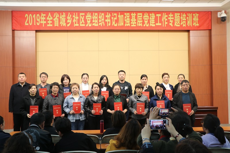 4月19日10:30,2019年全省城乡社区党组织书记第四期(总72)培训班结业仪式在东北大学机电学馆201室举行,辽宁社区干部学院副院长、文法学院院长孙萍同志,辽宁社区干部学院办公中心主任、文法学院副院长隋永强同志参加了本次结业仪式,仪式由隋永强主持。
