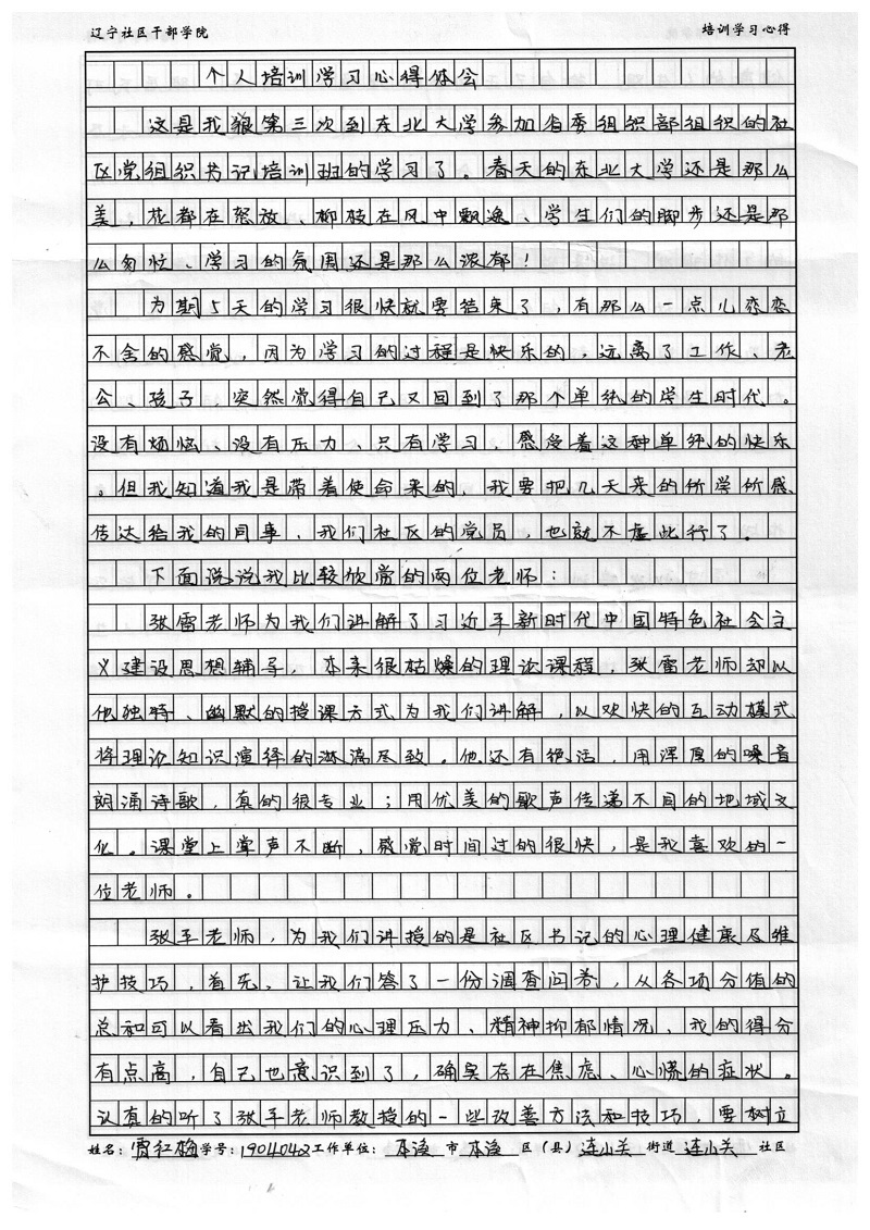 本溪市本溪满族自治县连山关社区贾红梅学习心得