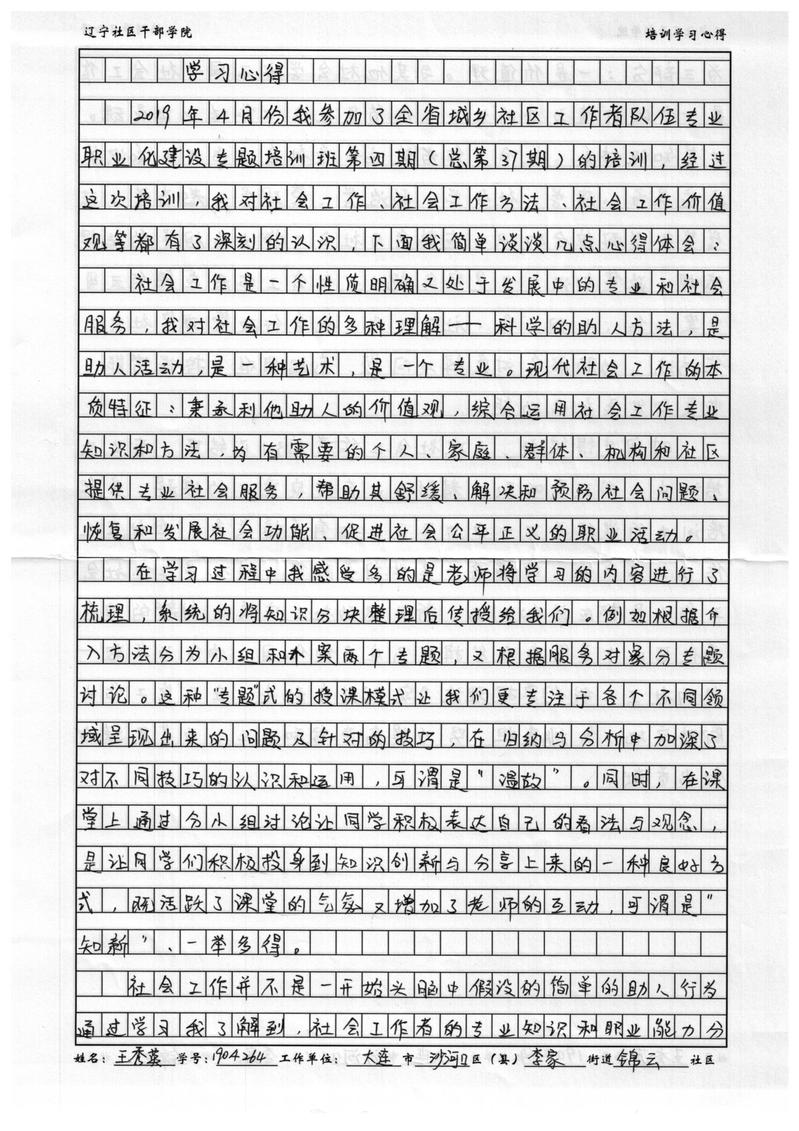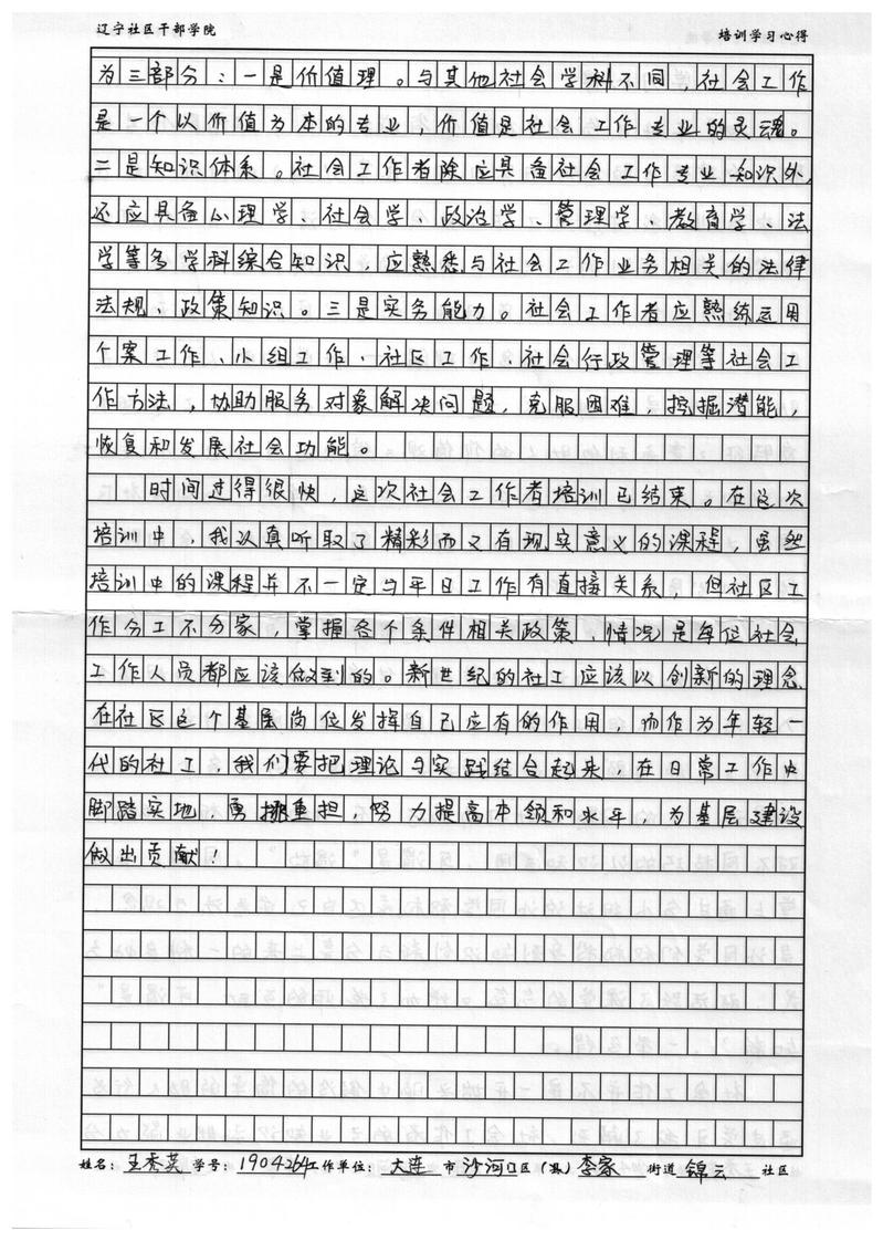 大连市沙河口区李家街道锦云社区王秀英学习心得