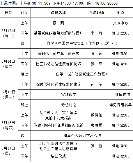 2019年全省城乡社区党组织书记第七期(总第75期)培训班课程安排