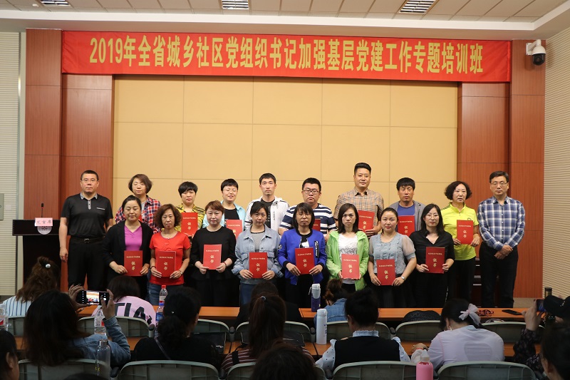 5月17日10:30,2019年全省城乡社区党组织书记第七期(总75)培训班结业仪式在东北大学机电学馆201室举行,辽宁社区干部学院副院长、文法学院党委书记张雷教授,辽宁社区干部学院办公中心主任、文法学院副院长隋永强同志,参加了本次结业仪式,仪式由陈玉芬主持。