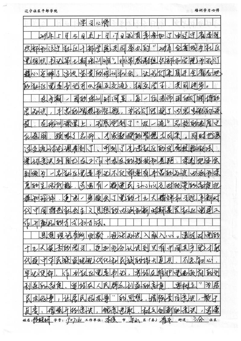 本溪市平山区崔东街道三合社区书记张晓明学习心得