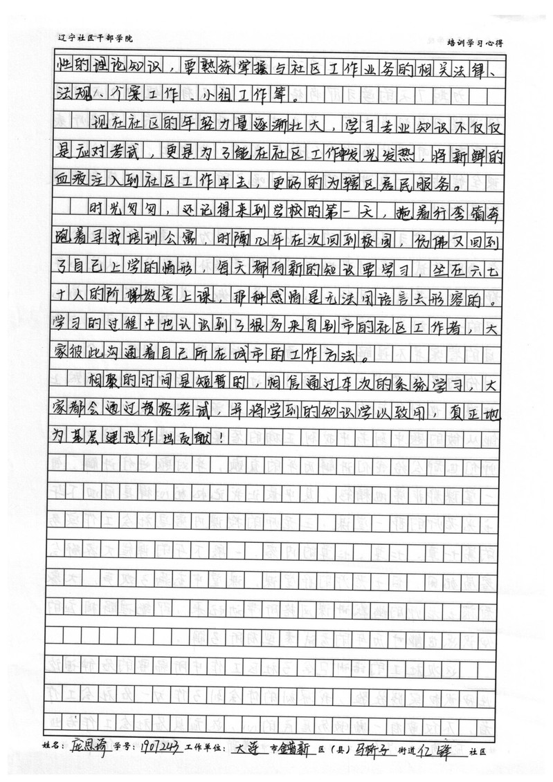 大连市金普新区马桥子街道亿锋社区社区庞思琦学习心得