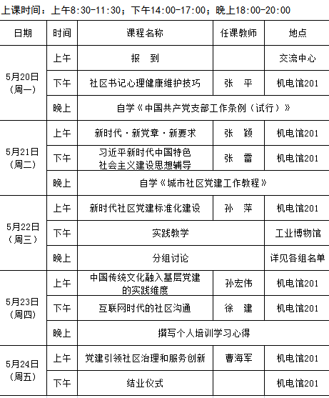 2019年全省城乡社区党组织书记第八期(总第76期)培训班课程安排