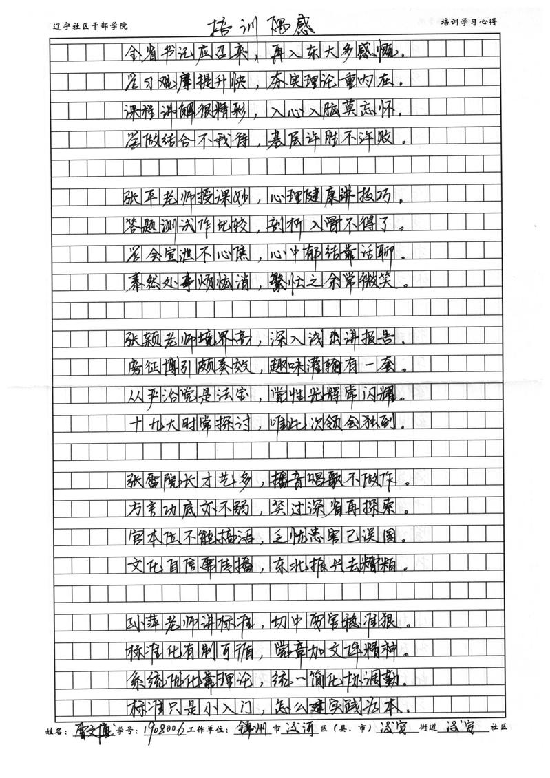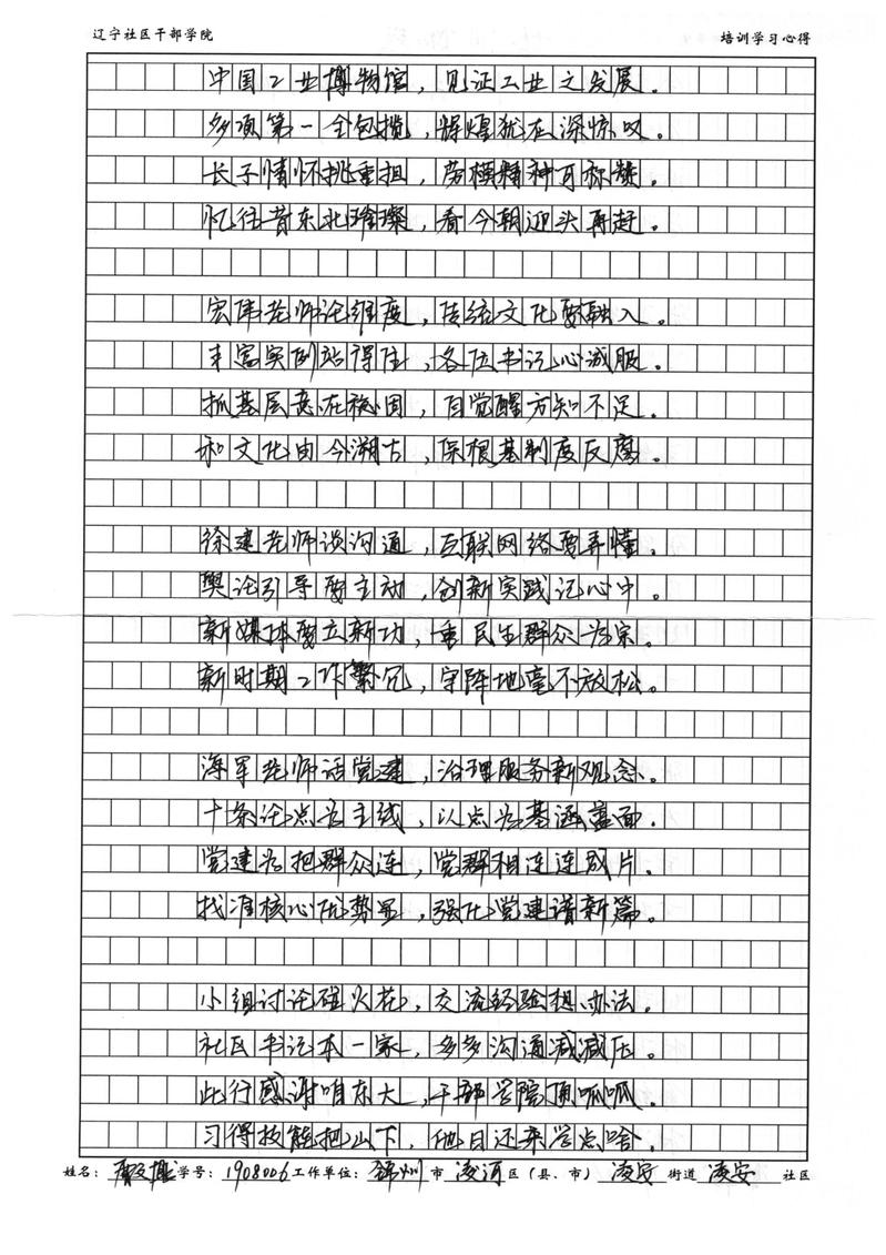 锦州市凌河区凌安街道凌安社区书记曹文博学习心得