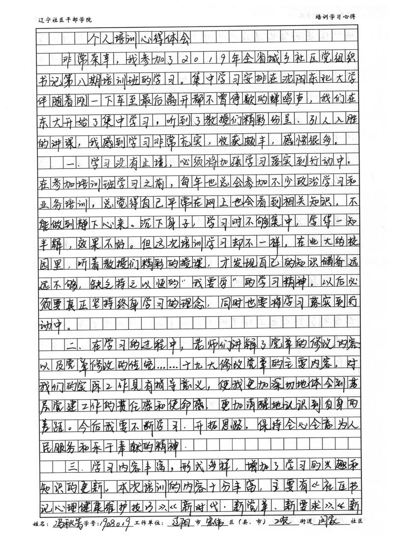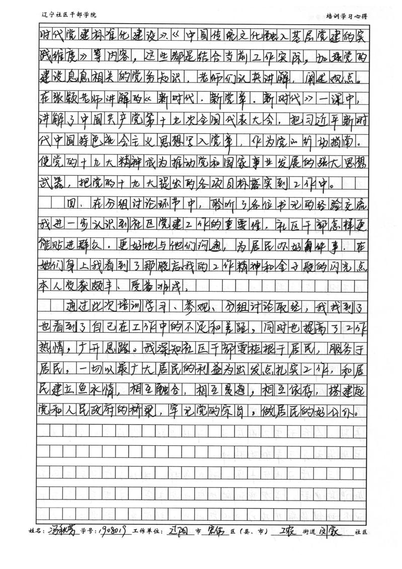 辽阳市宏伟区工农街道闵家社区副书记冯秋芳学习心得