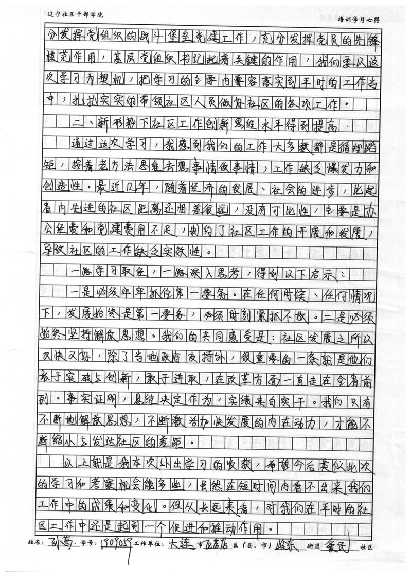 大连市瓦房店市岭东街道爱民社区副书记孙茜学习心得