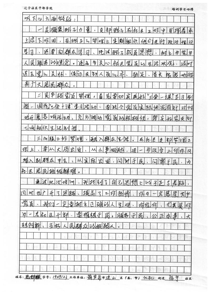 葫芦岛市连山区化机街道福宁社区党总支书记王姝焕学习心得