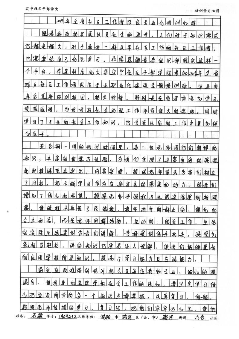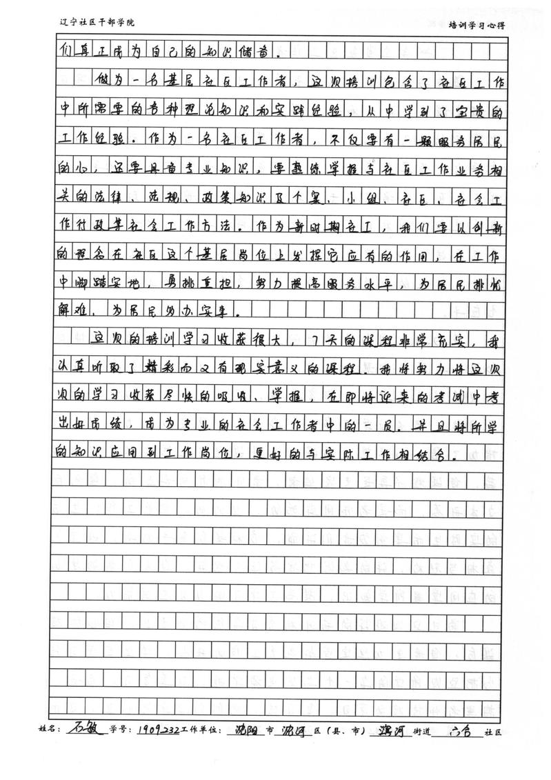 沈阳市沈河区滨河街道六合社区副书记石敏学习心得