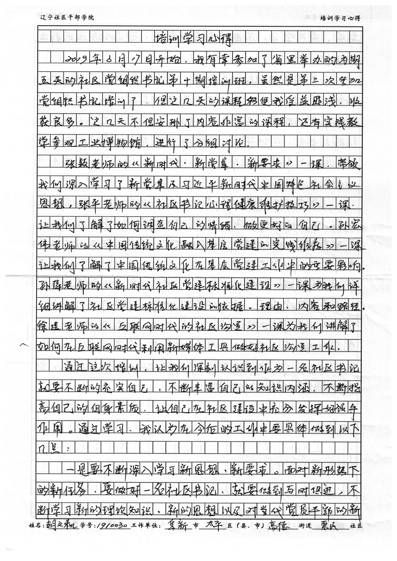 阜新市太平区高德街道惠民社区胡文秋学习心得