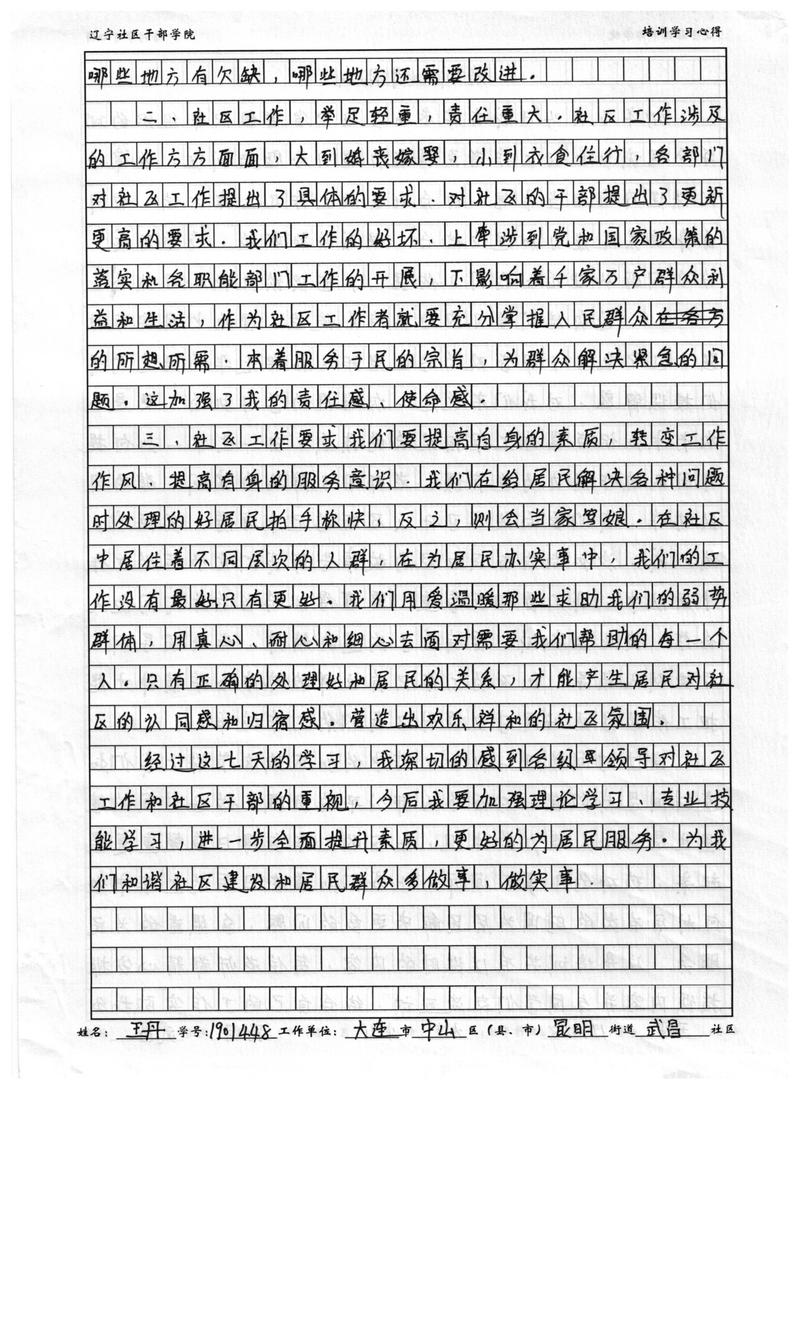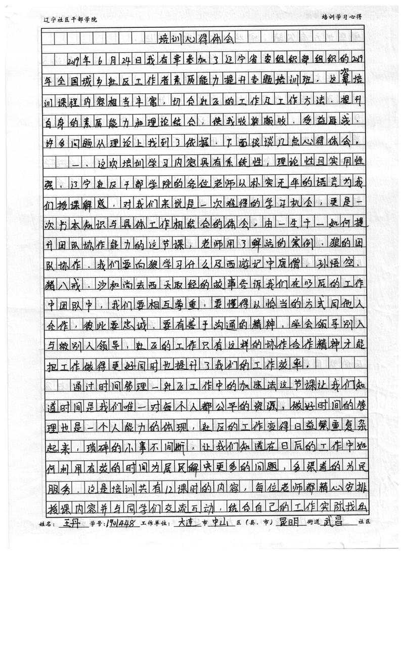 大连市中山区昆明街道无偿社区 王丹学习心得