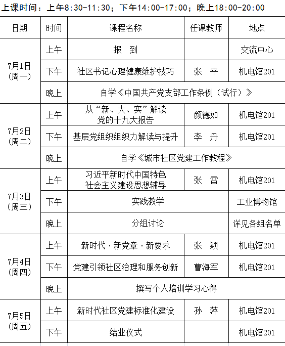 2019年全省城乡社区党组织书记第十一期(总第79期)培训班课程安排