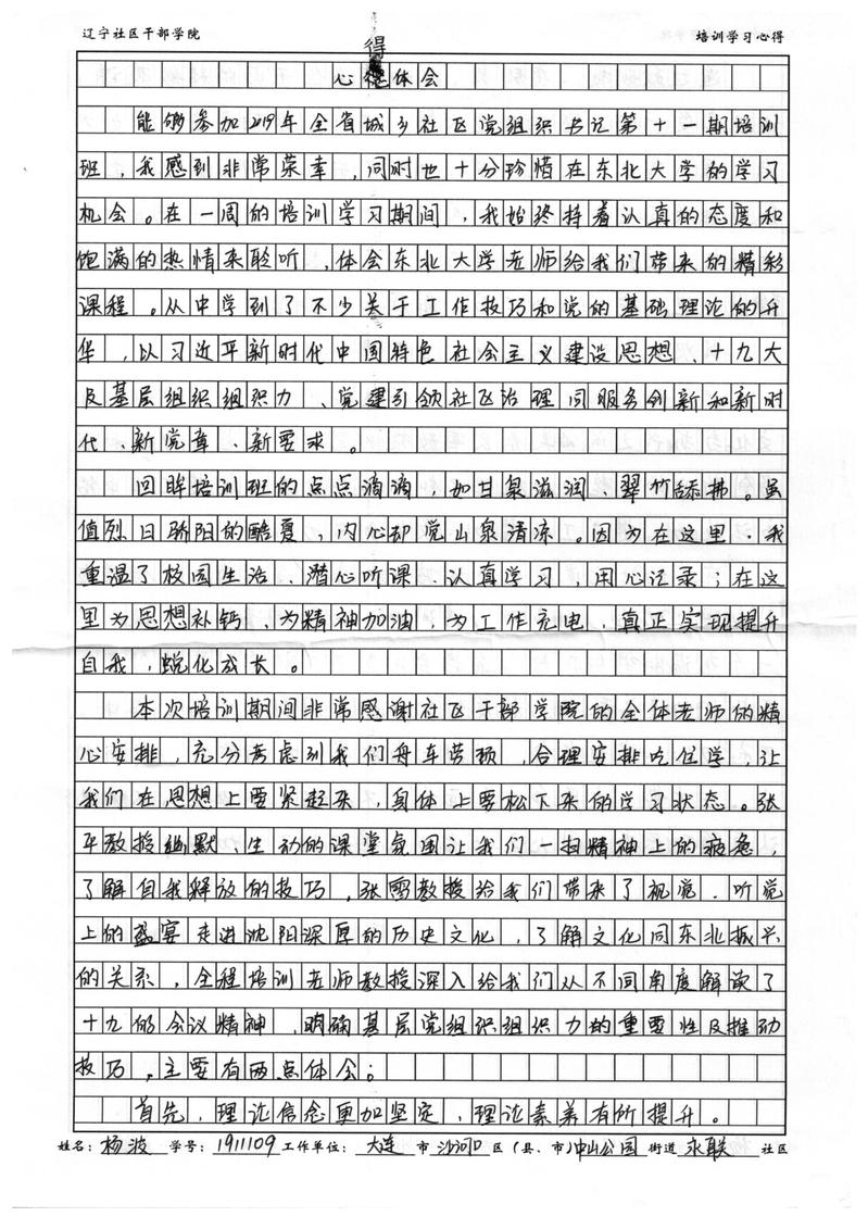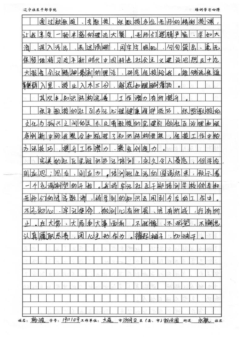 大连市沙河口区中山公园街道永联社区书记杨波学习心得