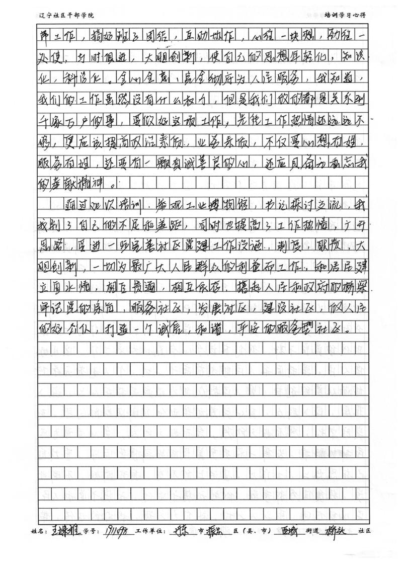 丹东市振兴区西城街道桥头社区书记王姝雅学习心得