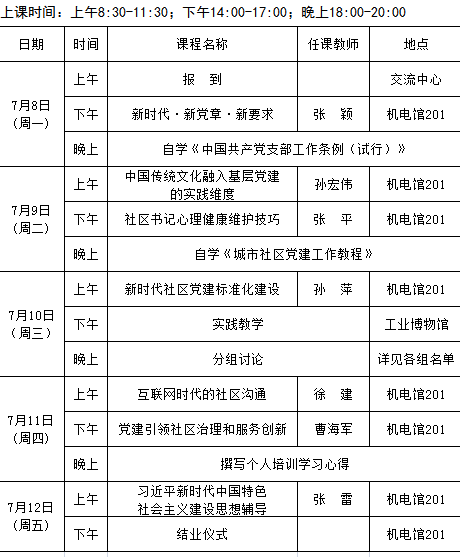 2019年全省城乡社区党组织书记第十二期(总第80期)培训班课程安排