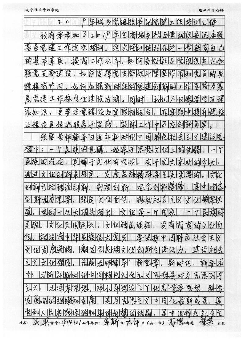 阜新市太平区高德街道繁荣社区吴彤学习心得