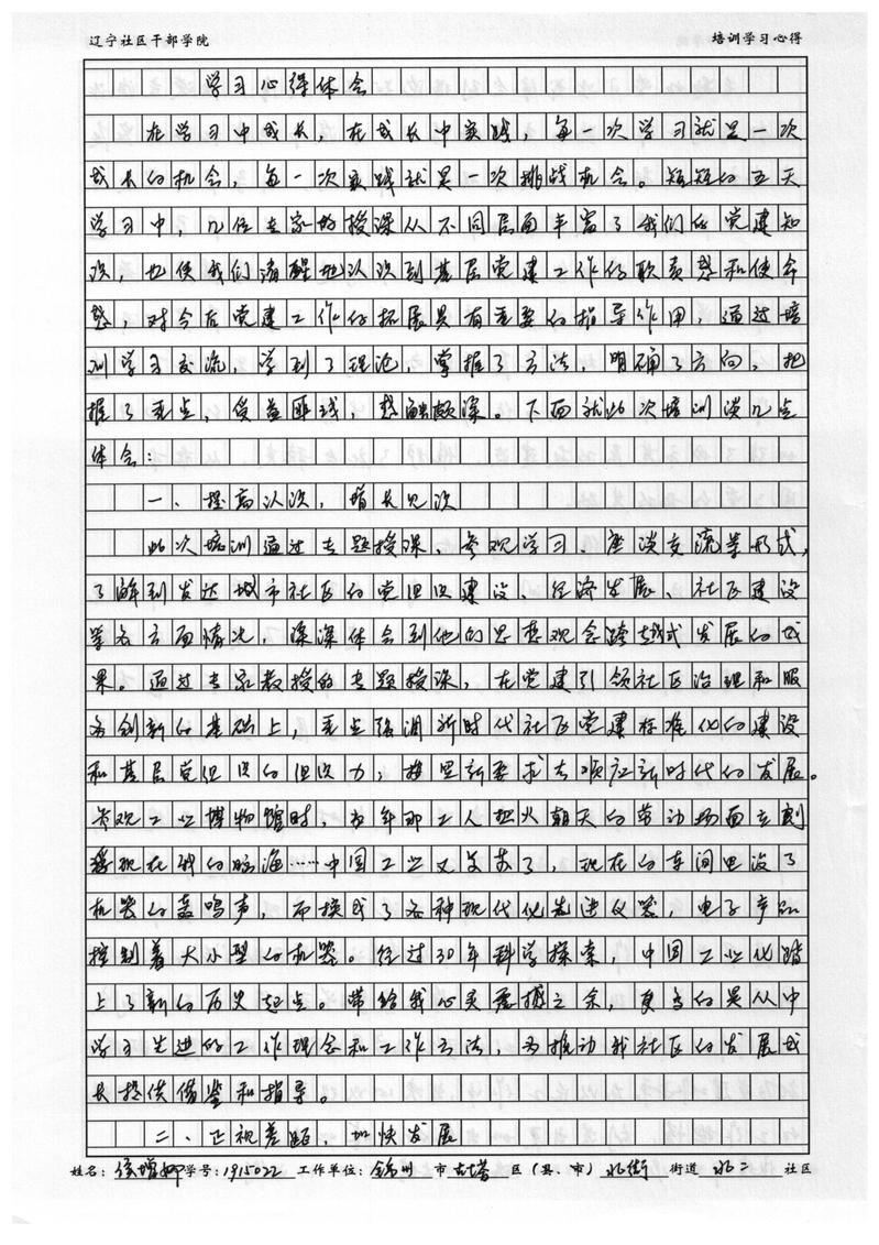 锦州市古塔区北街街道北二社区书记侯增娜学习心得