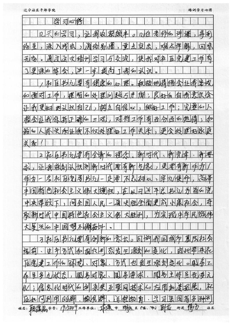 本溪市明山区卧龙街道绢纺社区书记段溪晶学习心得