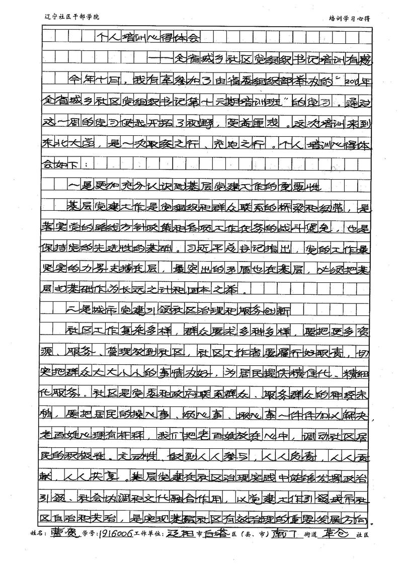 辽阳市白塔区南门街道草仓社区书记曹贺学习心得