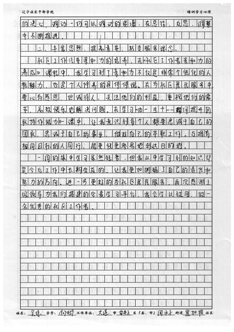 大连市甘井子区周水子街道星加坡社区吴琼学习心得
