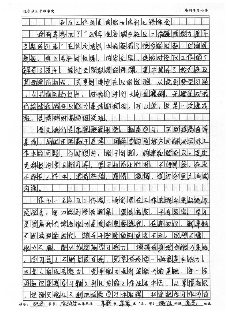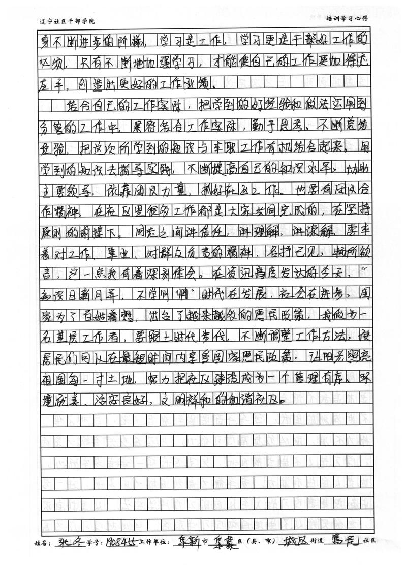 阜新市阜蒙县富民社区工作者张冬培训心得