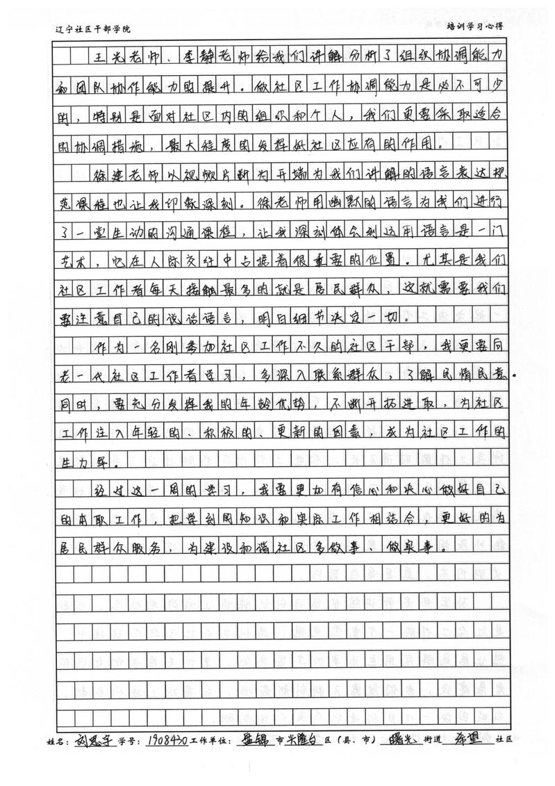 盘锦市兴隆台区曙光街道希望社区副书记刘思宇培训心得