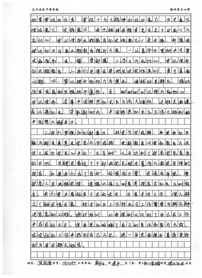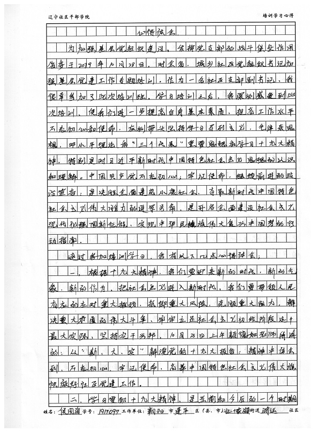 朝阳市建平县北二十家子镇鸿运社区党组织副书记侯国海培训心得