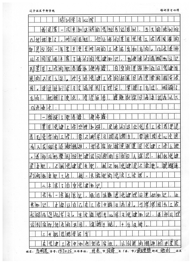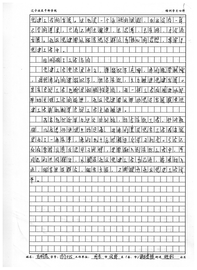 丹东市凤城市通远堡镇胜利社区方明花培训心得