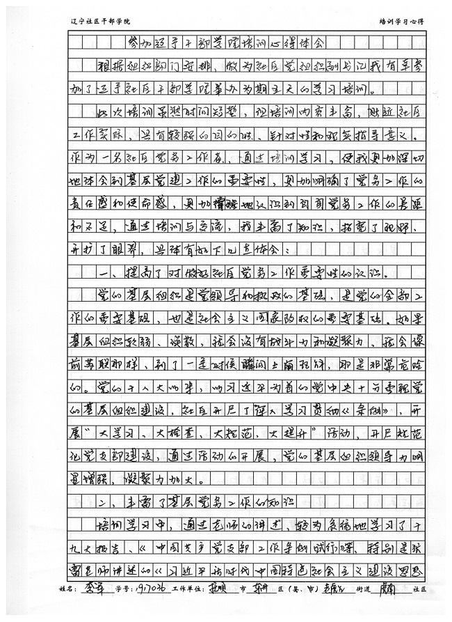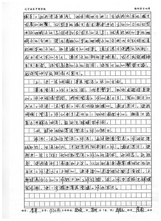 抚顺市东洲区老虎台街道虎南社区副书记李军培训心得