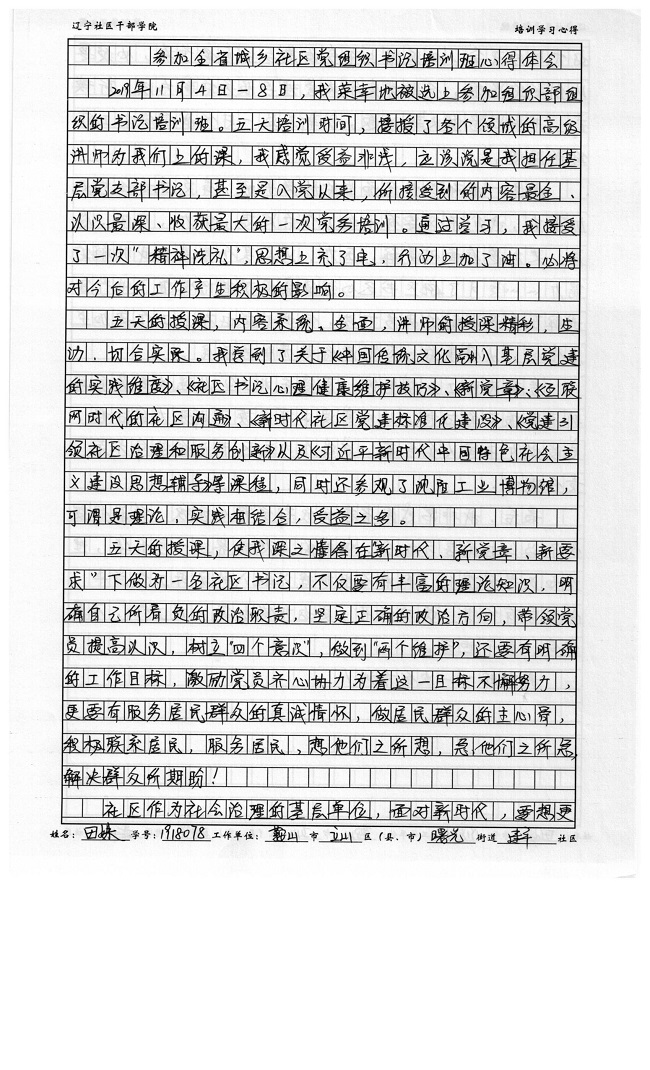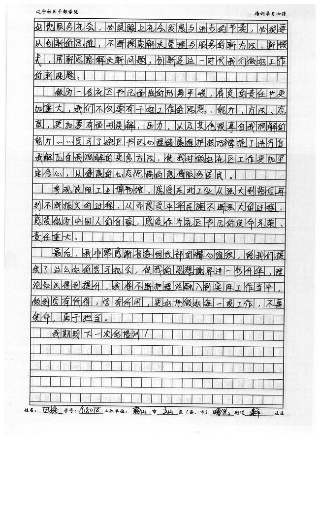 鞍山市立山区曙光街道建平社区书记田姝培训学习心得
