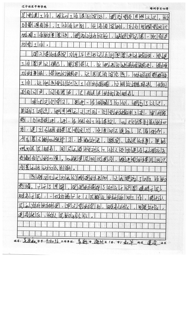 阜新市海州区和平街道建设社区书记吴延秋培训学习心得