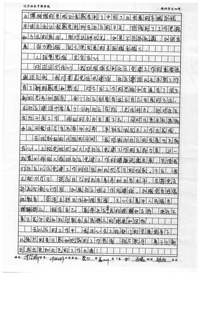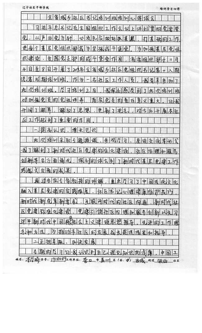 营口市盖州区西城街道铁西社区李学琦培训学习心得